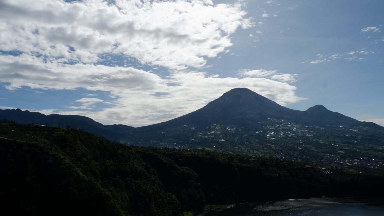 Nikmati liburan sempurna dengan pemandangan menakjubkan Telaga Menjer, kebun teh yang hijau, dan megahnya Gunung Sindoro.